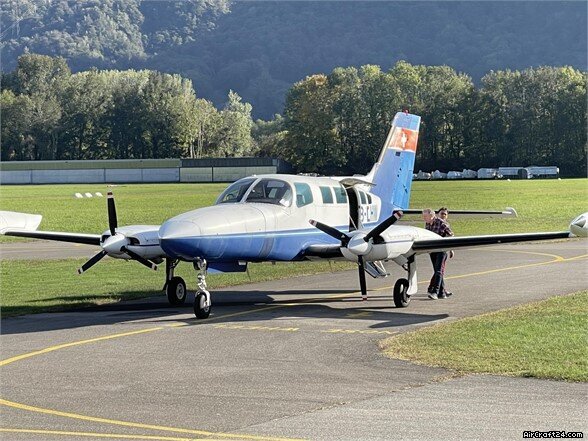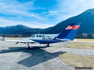 8 seat aircraft Serial Number: 0926 Former registration N87130 MTOW: 2858 kg / 6300 Lbs EW: 3873 Lbs Fuel Capacity: 206 USG, Usable 202 USG / 767 Liters AVGAS 100 LL Fuel Range at 55%, 6.5 hours, 1100 NM, at 165 Kts Range at 75%, 4.8 hours, 780 NM, at 195 Kts
