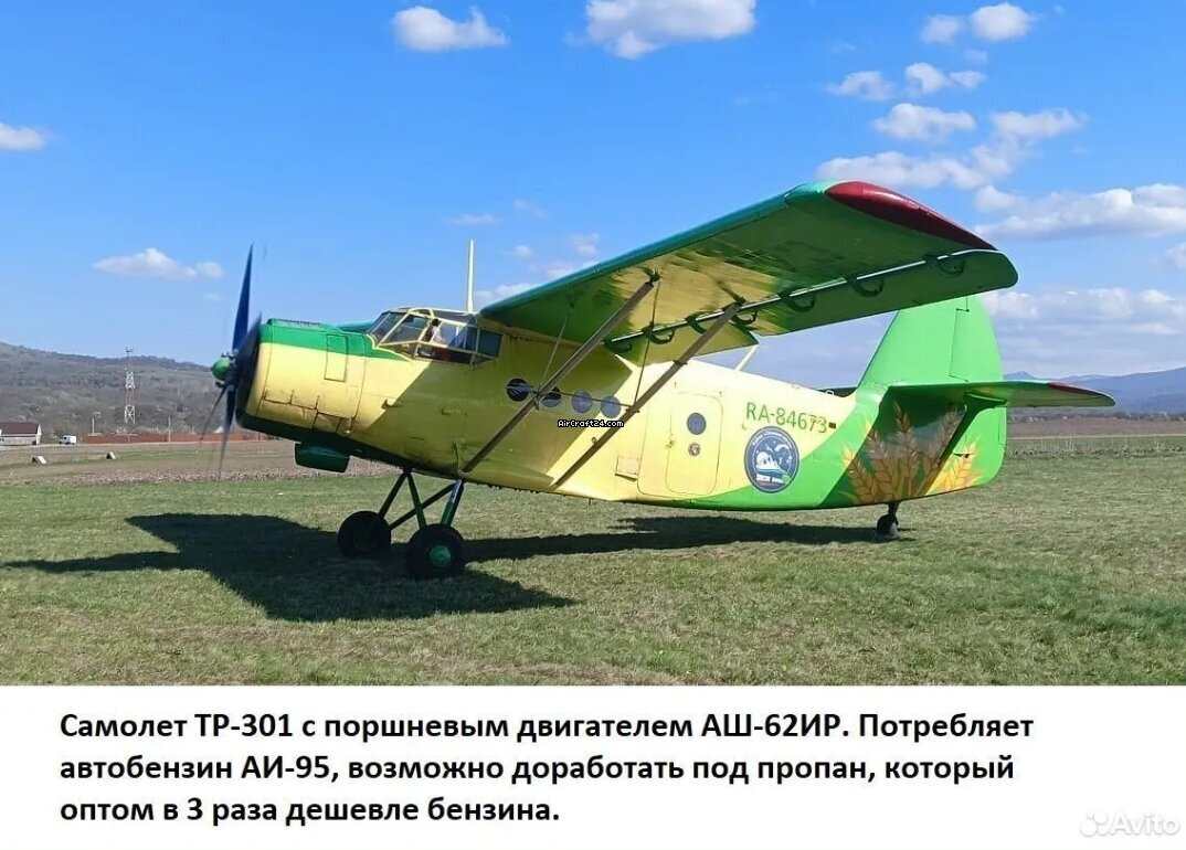 | Base data | | Type: | Single Prop | | Special Type: | Agricultural Homebuilt/Experimental | | Make: | Antonov | | Model: | TR301 | | Year built: | 2026 | | Location: | Russia, Yesk | | Total Time (TTAF): | 10 h | | Price: | US$ 400,000 (~ AUD 581,089) |