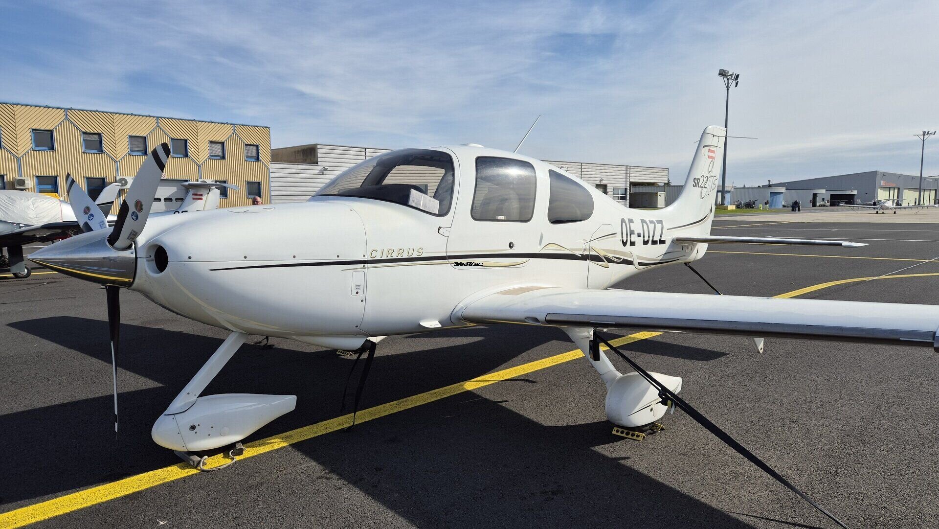 | Base data | | Type: | Single Prop | | Make: | Cirrus | | Model: | SR22-G2 GTS | | Year built: | 2006 | | Registration No.: | OE-DZZ | | Serial No.: | 2020 | | Attributes: | IFR certified IFR equipped | | Location: | Austria, Graz, LOWG | | Total Time (TTAF): | 1230 h | | Price: | € 290,000 (~ AUD 517,563) | | EU VAT paid: | yes |
