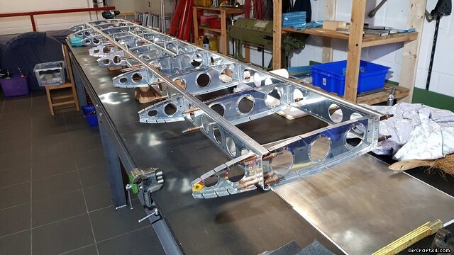Das Höhenleitwerk, das Seitenruder sowie der vordere Rumpfabschnitt sind teilweise fertiggestellt. Alle bisher ausgeführten Arbeiten wurden äußerst sorgfältig von erfahrenen RV-Erbauern durchgeführt. Sämtliche Bauteile wurden zur Korrosionsvorsorge alodined und anschließend mit einem luftfahrtzugelassenen Epoxidprimer von Akzo Nobel beschichtet.